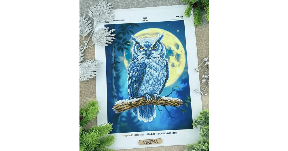 Blue Owl Bead Embroidery Kit – DIY Beading Kit – Art Needlepoint Set – Gift Beaded