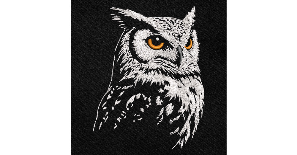 Owl Embroidery Design, Horned Owl Digital Pattern for Dark Textile, Bird of Prey Machine Embroidery