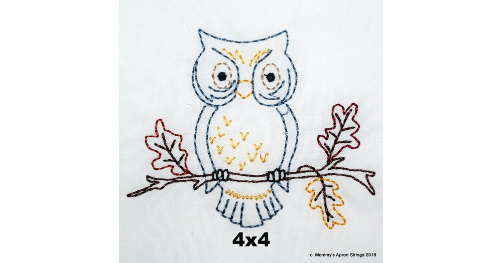 Vintage Owl on Branch with Leaves Machine Embroidery Design 4x4 AND 5x7, quick, looks hand-stitched,