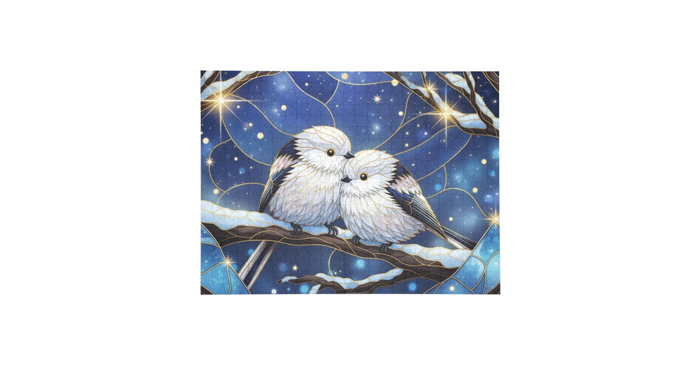 Snowy Owl Couple Puzzle - Winter Night Stained Glass Art, Magical Blue Forest Gift