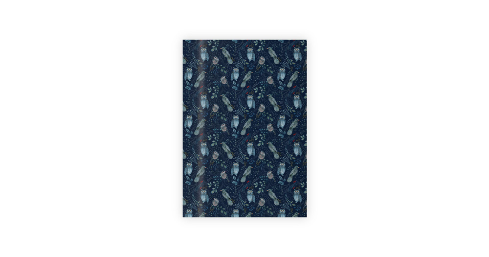 Owls and Foliage Pattern Gift Wrap Roll | Dark Blue Wrapping Paper