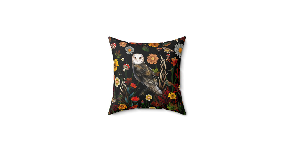 Barn Owl Floral autumn fall Pillow | Botanical Night Garden Throw Pillow