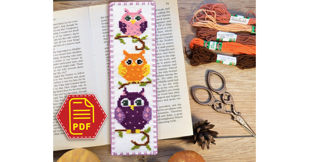 Cute owls cross stitch bookmark pattern, Birds embroidery design Download in PDF