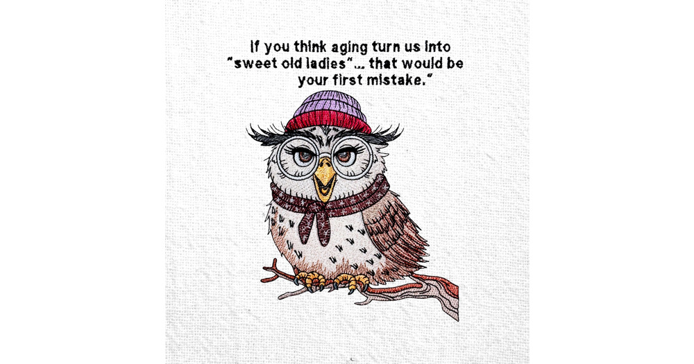 Aging Ladies Machine Embroidery Design Owl With Glasses Embroidery Design Sweet Old Ladies Quote Des