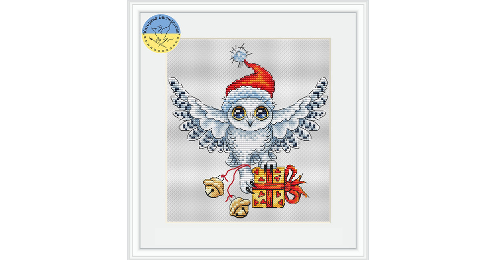 Owl present PDF cross stitch pattern bird - New Year Gift - Funny Polar White owl chart - Christmas