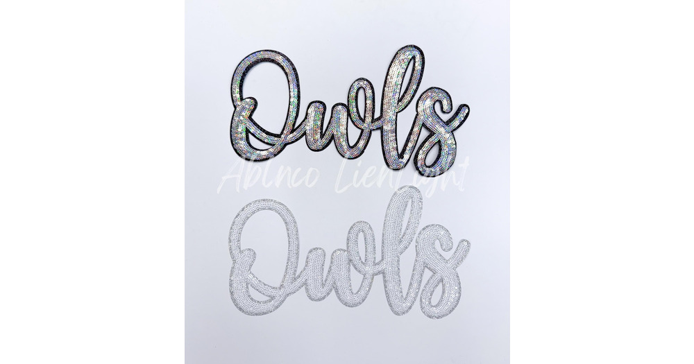 Owls Sequin Script Patch: Iron On Mascot Patch (12” x 6.7”)