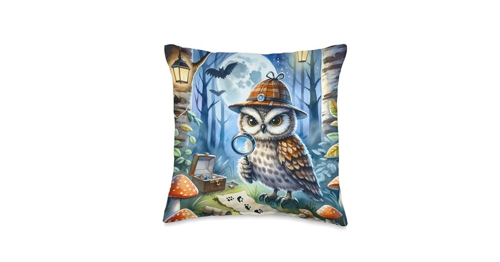Owl Detective Solves Mystery. Hat Magnifying Glass Clues Throw Pillow