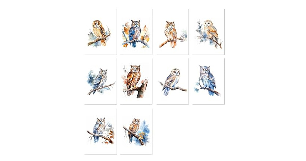 10 All Occasion Blank Note Cards with Envelopes Handmade Notecards 4x6 Watercolor Owls