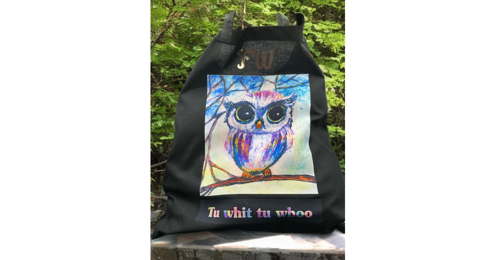 Personalised tu whit tu whoo owl art black cotton tote bag, , useful gift for family or friends. 3