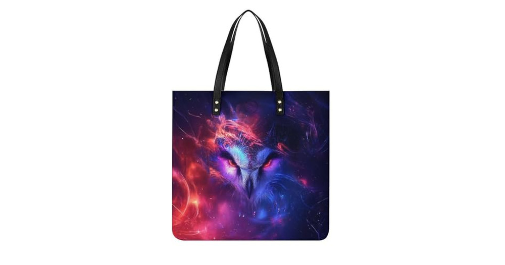 Fashion Leather Purse for Women, Large Capacity Purple Blue Galaxy Owl Art Tote Bag, Lightweight Sho