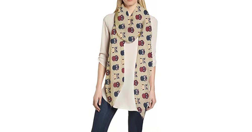 Lina & Lily Owl Print Women's Scarf Shawl Wrap Lightweight (Beige)