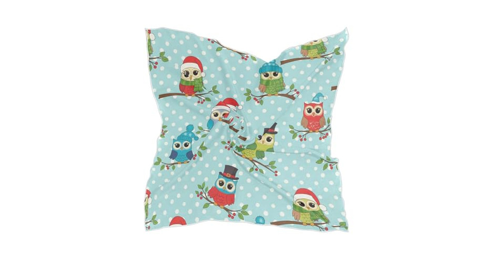 KOPIRIT Silk Scarf for Women Christmas Owls Print Head Hair Scarf Hair Wrap Bandana 23.6"