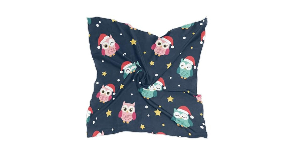 KOPIRIT Silk Scarf for Women Cartoon Christmas Owls Print Head Hair Scarf Head Wrap Bandana 23.6&quo