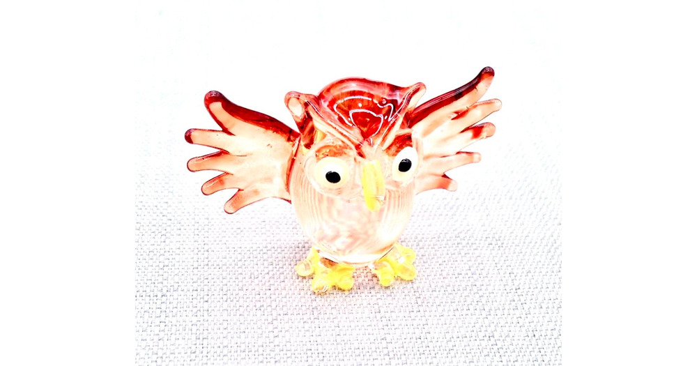 Miniature Hand Blown Glass Funny Baby Owl Wings Bird Animal Cute Tiny Brown Figurine Statue Decorati