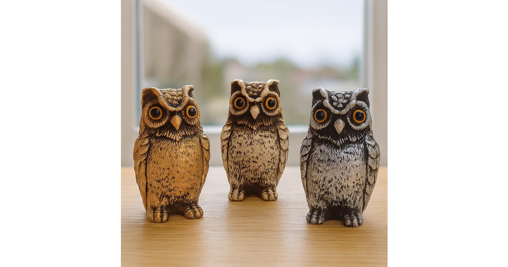 1PC Vintage Owl Figurine, Plastic Owl Statue Gold Silver Wood Tone Owl, HandPainted Owl Decor, Small