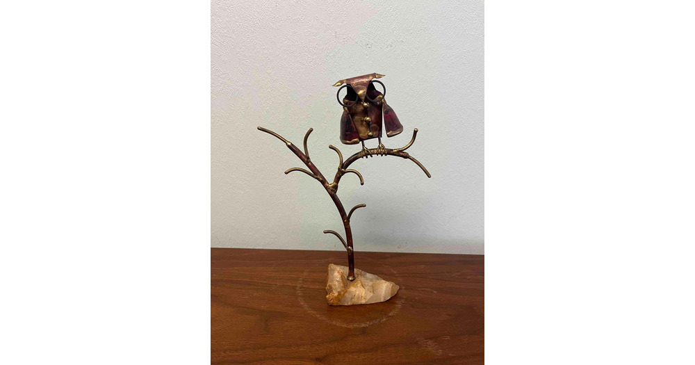 Vintage Brutalist Metal Owl With Eyeglasses Figurine - Signed