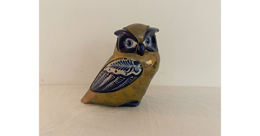 Brass and Tonala Owl in the style of Sergio Bustamante