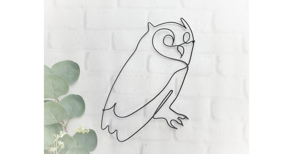 Owl Wire Sculpture Wall Hanging Continuous Single Line Art Animal Decoration Ornithology Decor Minim