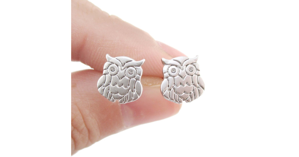 Minimal Wise Barn Owl Shaped Stud Earrings in Silver | Minimal Handmade Animal Inspired Jewelry for