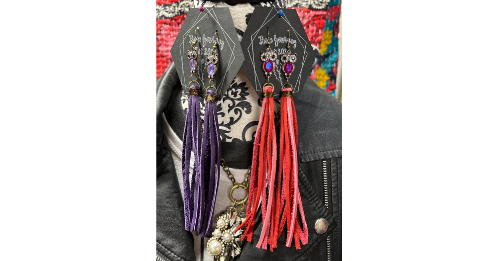 Handmade Leather Fringe Owl Earrings: Hypoallergenic Dangle Earrings