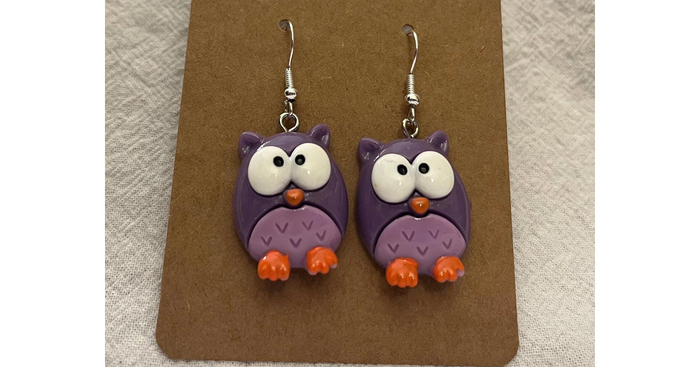 Purple Owl big eyes earrings, 925 sterling silver, resin, novelty, gift, drop, dangle