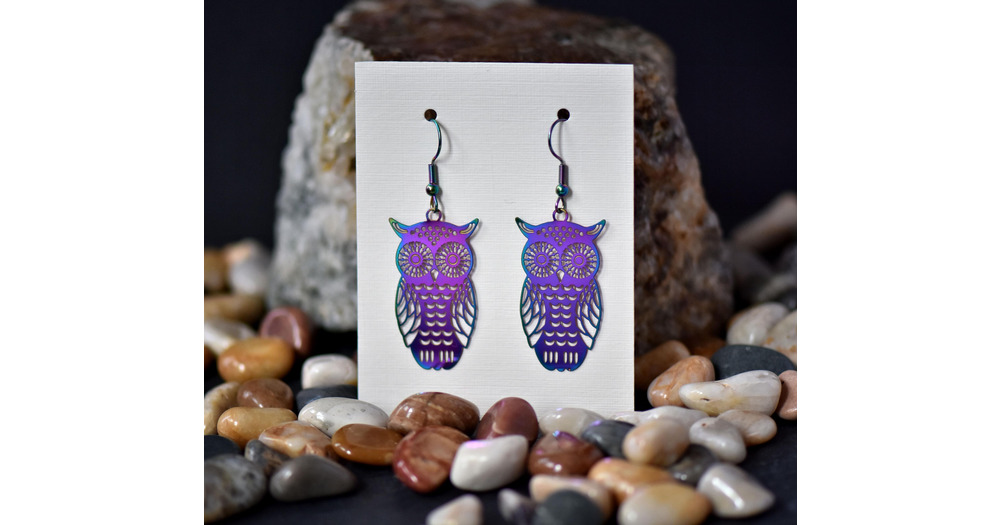 Iridescent Rainbow Stainless Steel Owl Earrings