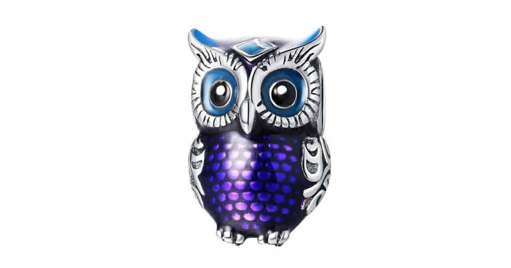EHEG Purple Owl Charms for Bracelets and Necklaces 925 Sterling Silver with 5A Cubic Zirconia Dangle