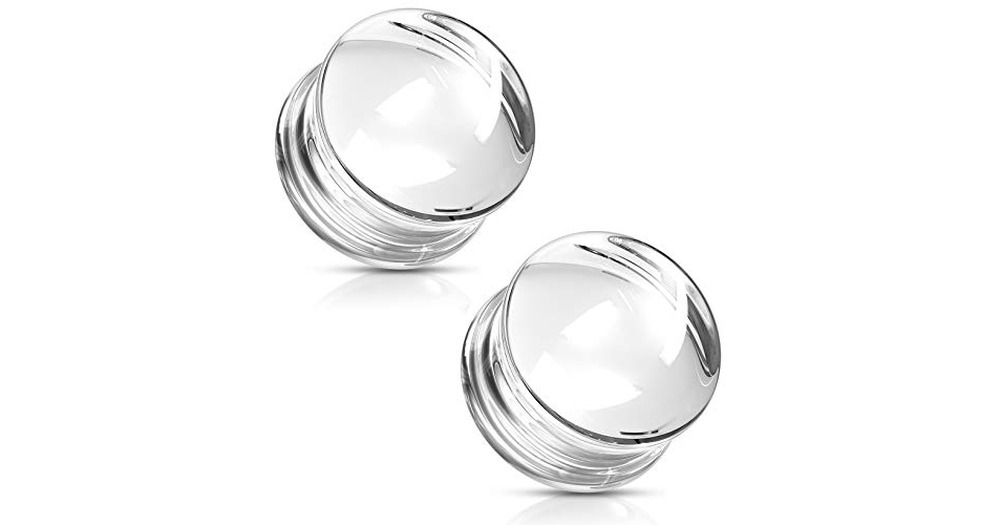 Pierced Owl Clear Glass Double Flared Concave Saddle Glass Plugs, Sold as a Pair (10mm (00GA))