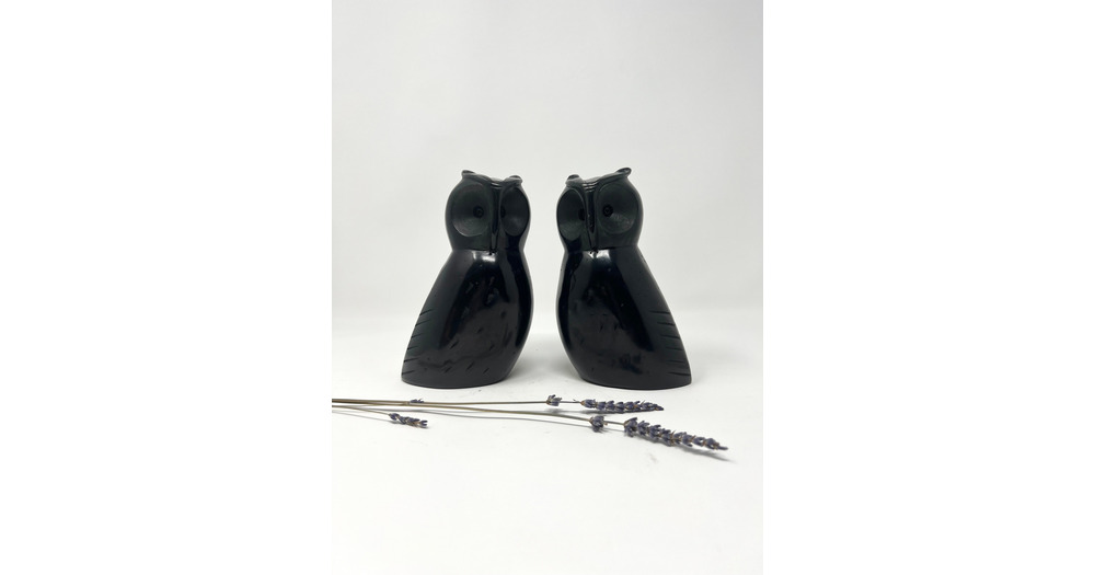 1970s Soapstone Owl Bookends | Black Palewa Soapstone Owls | Mid Century Modern Owl Decor