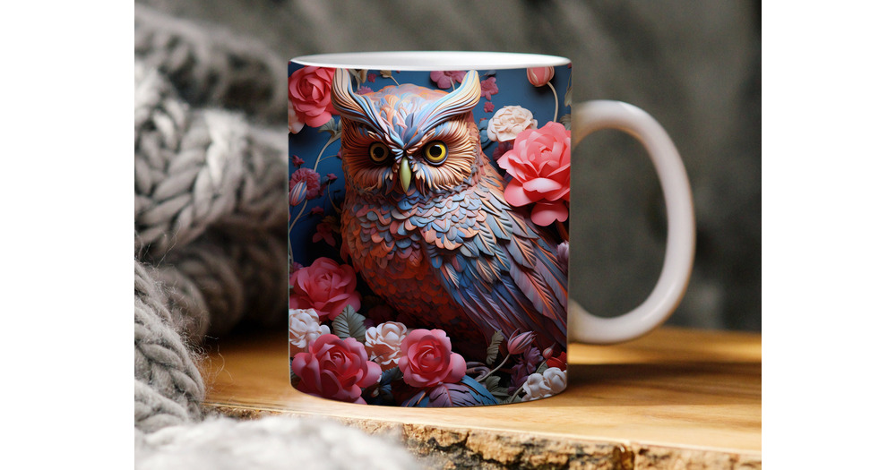 3d cute baby owl mug wrap, 11oz and 15oz mug Template, mug sublimation design, mug wrap template, co