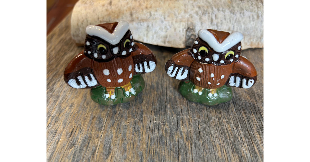 Vintage Handmade Ceramic Owl Pair: Colorful Peruvian Folk Art Decor