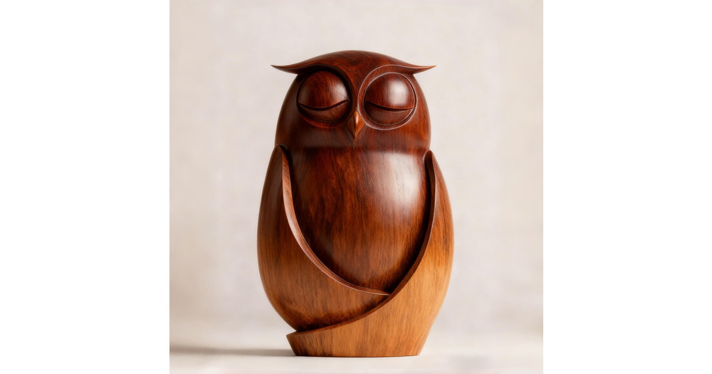 Handcrafted Wooden Owl Sculpture | Mid-Century Modern Home Decor | Unique Artisan Wood Carving for N