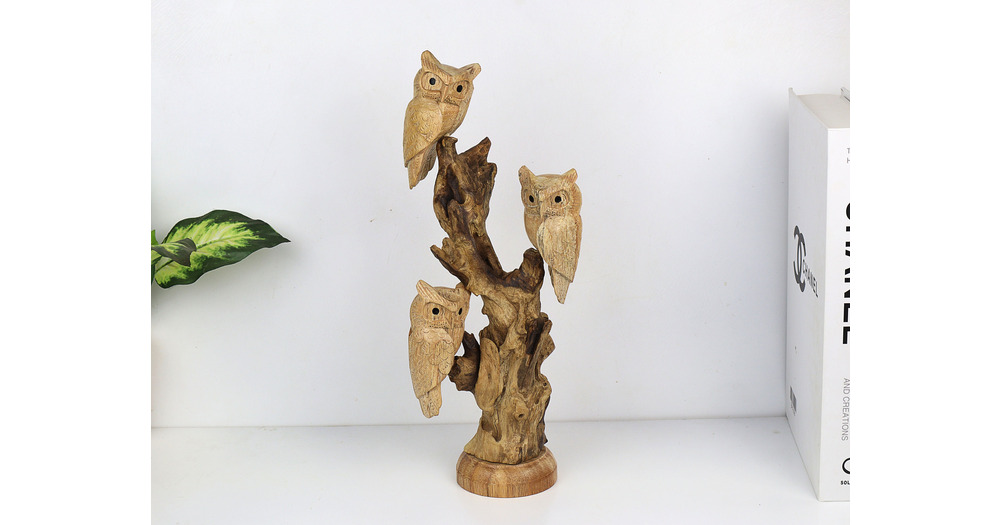 Handcrafted Wooden Owl Family on Driftwood | Rustic Woodland Decor | Three Owls | Nature-Inspired Ho