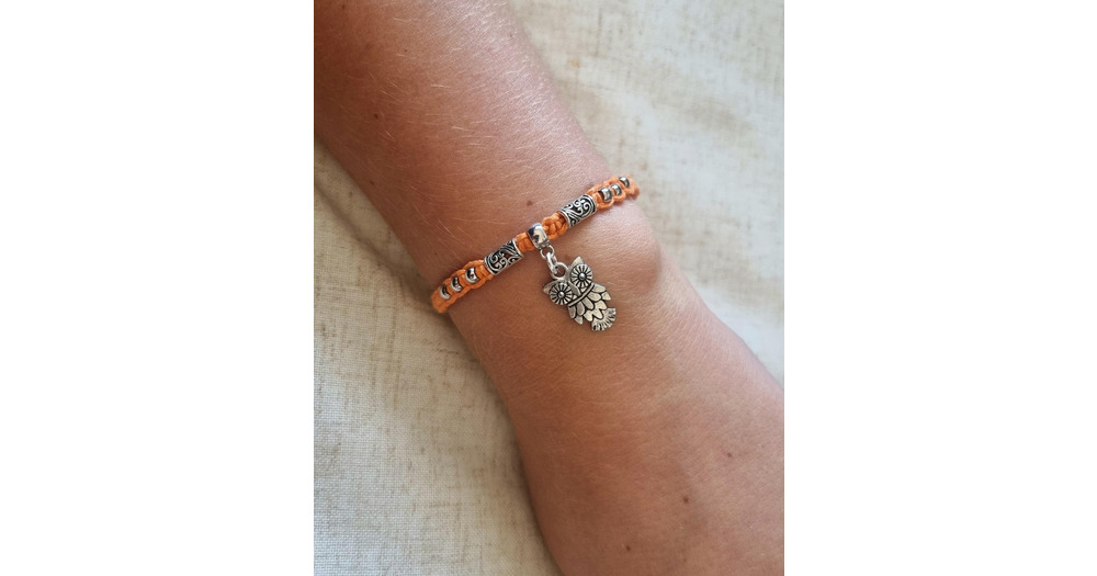 Silver Owl Bracelet: Adjustable Macrame Jewellery