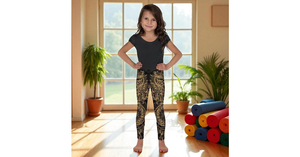Cute Golden Owl Leggings For Kids, Ornamental Printed Stretch Bottoms For Play Or Casual Wear, Comfo