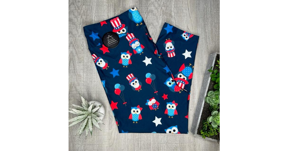 Patriotic Cute Owls Print Capri Soft Navy Blue Leggings - 4th of July - adult & kids
