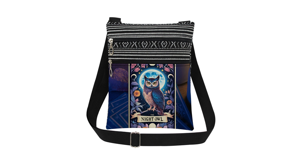 Night Owl Crossbody Bag: Bohemian Style Bag, Multi-Zip & Adjustable Strap