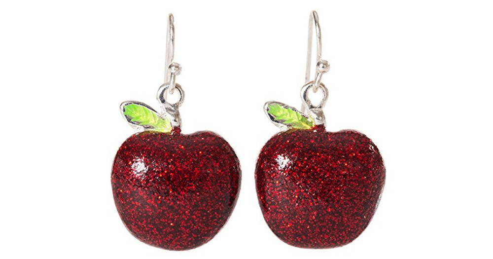 Artisan Owl - Red Apple Sparkling Enamel Polished Silver Tone Fruit Dangle Earrings