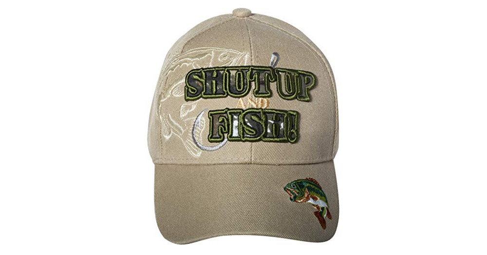 Artisan Owl Shut Up and Fish! Embroidered Fishing Cap - Adjustable Hook and Loop Closure (Khaki)