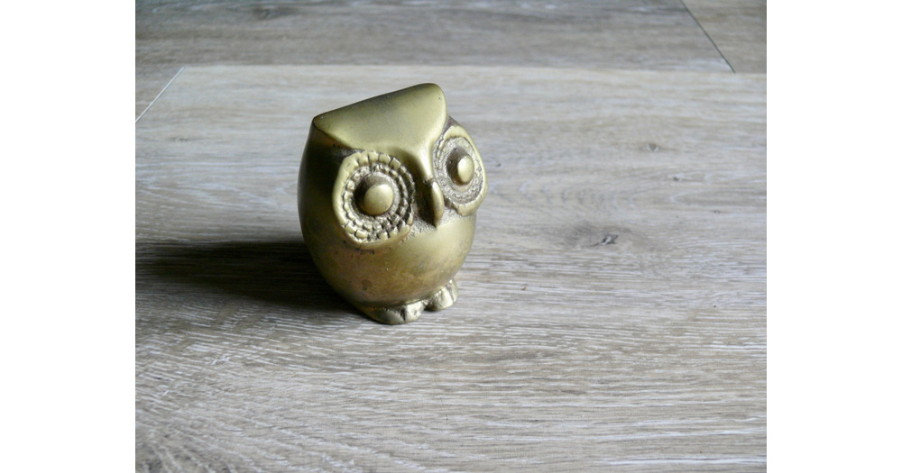 Vintage Brass Owl Figurine, Big Eye Paperweight Totem, Boho Desk Shelf Decor