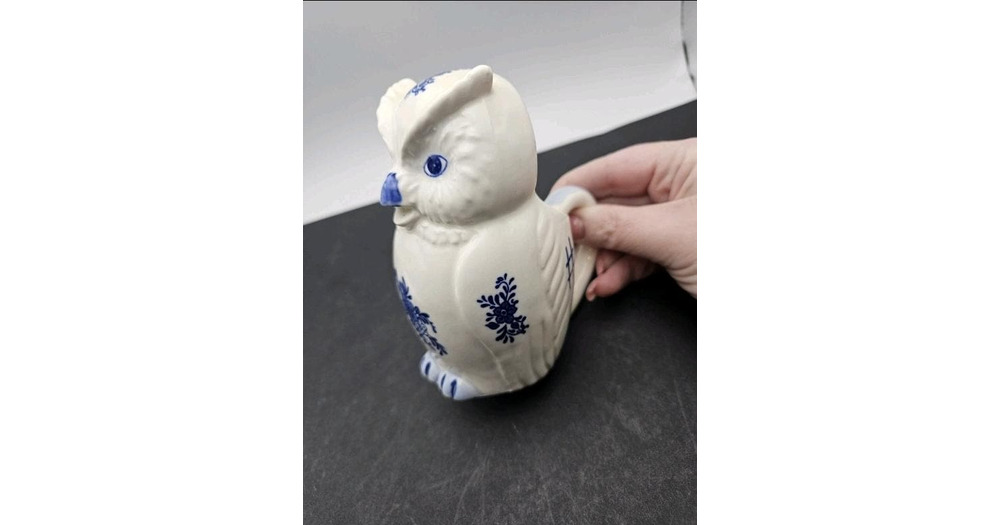 Vintage Blue & White Owl Creamer – JSNY Taiwan Figural Pitcher, 1970s–80s Ceramic Ow