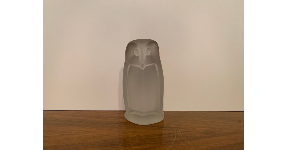Mid Century Owl, H.M. Laupman For Leerdam Holland, 1953, Pressed Satin Glass