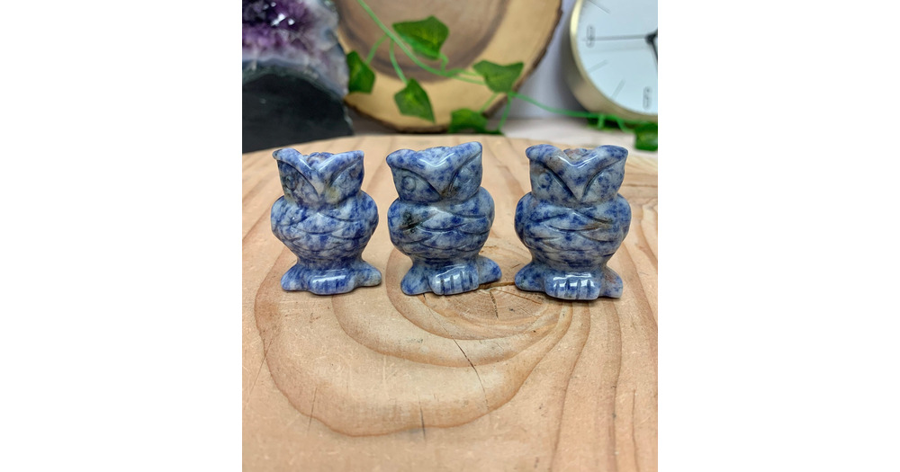 Sodalite Owl Carving, Hand Carved Owl Stone, Crystal Owl Carving, Blue Owl, Owl Figurine, Throat Cha