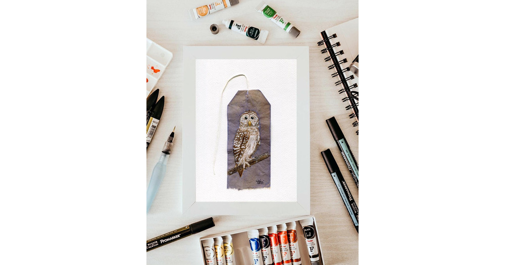 Barred Owl Watercolor Painting on Tea Bag - Original Nature Art