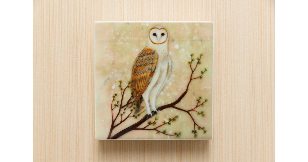 Waxed Mini - Guardian of the Wood Owl, encaustic mixed media reproduction