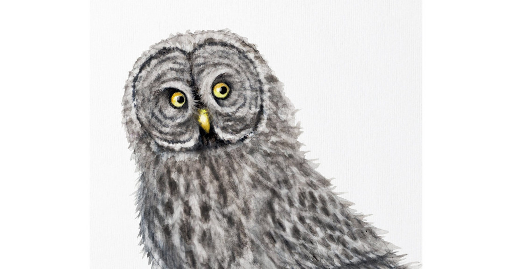 Great Grey Owl Original Art | British Bird Watercolour Painting