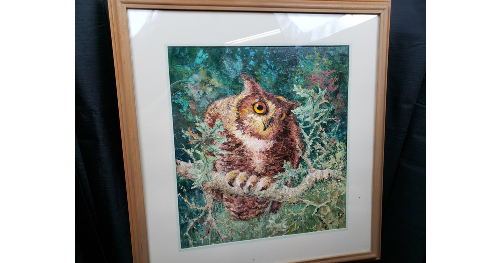 Large Owl Oil Painting Helen Badosley Badgley Framed 29.5" x 31.25" Free Ship