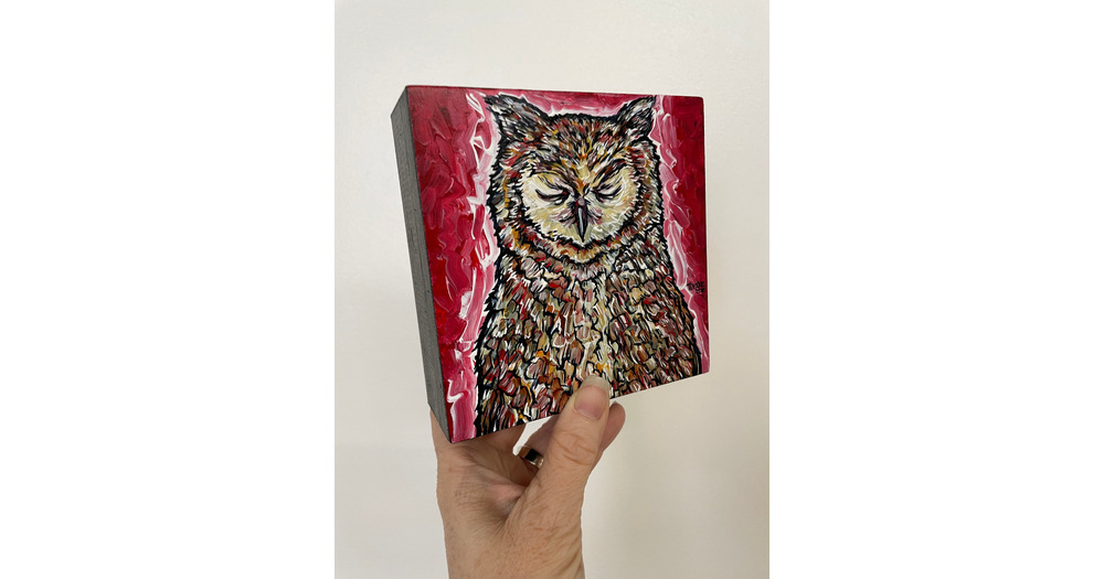 5x5” Tranquil Sleepy Owl original acrylic painting by Tracy Levesque