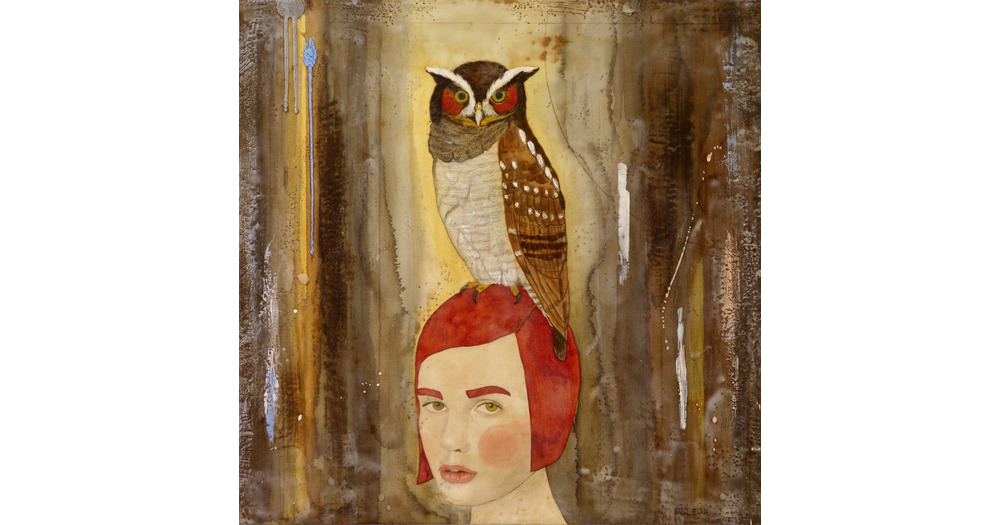 Messenger, owl painting, inspiring artwork, mystical red haired woman | dreamy earth tones| bird lov