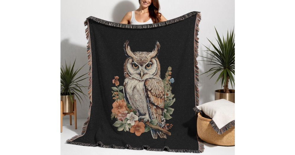 Owl Cotton Woven Blanket: Vintage Farmhouse Throw